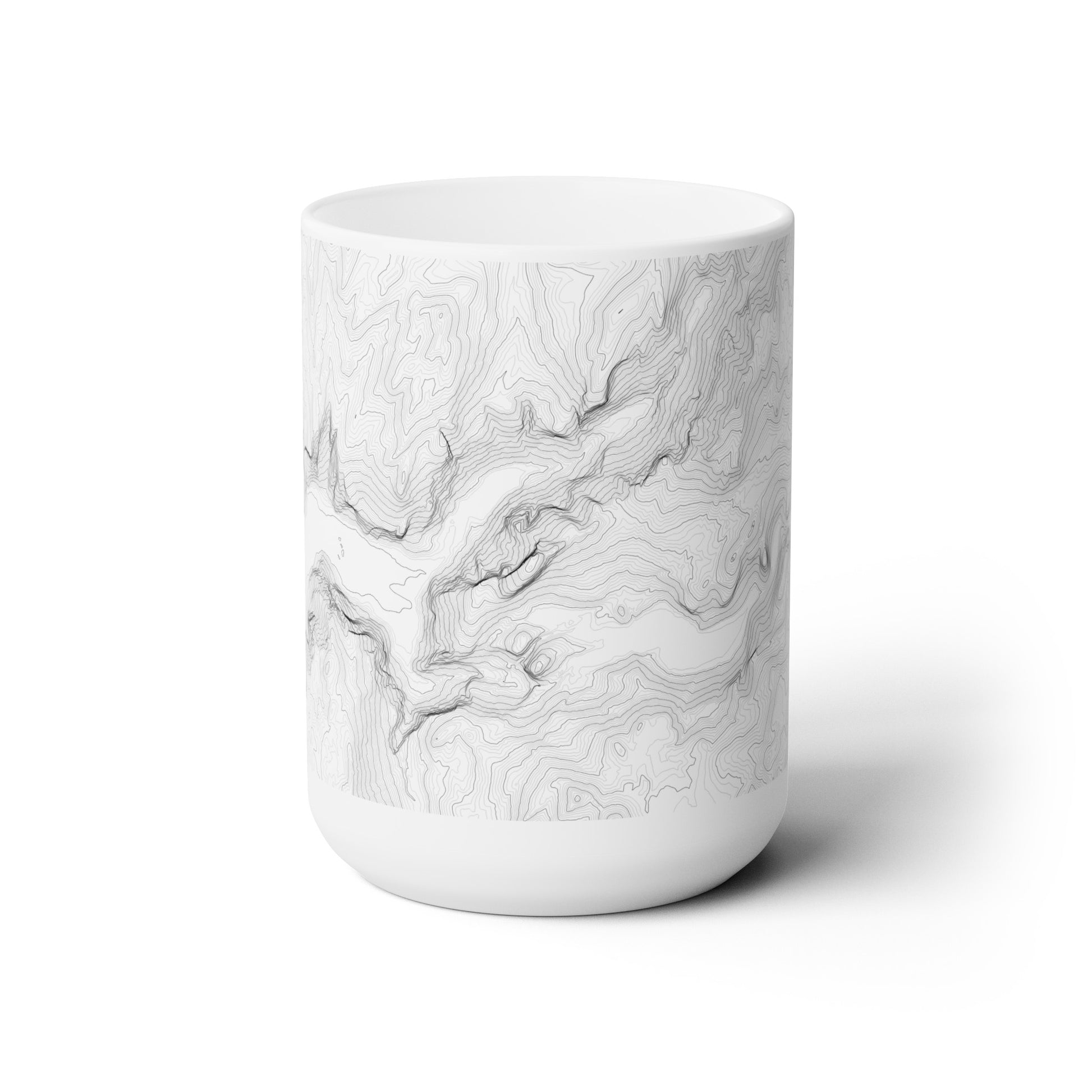 15 oz. ceramic mugs adorned with topographic maps of beloved outdoor destinations. Whether you're sipping your morning coffee or winding down with a hot cocoa by the campfire, let these mugs transport you to your favorite natural retreats. Microwave/dishwasher safe. Crafted with durable ceramic, each mug combines functionality with aesthetic appeal, making it the perfect companion for your adventures, both near and far.
