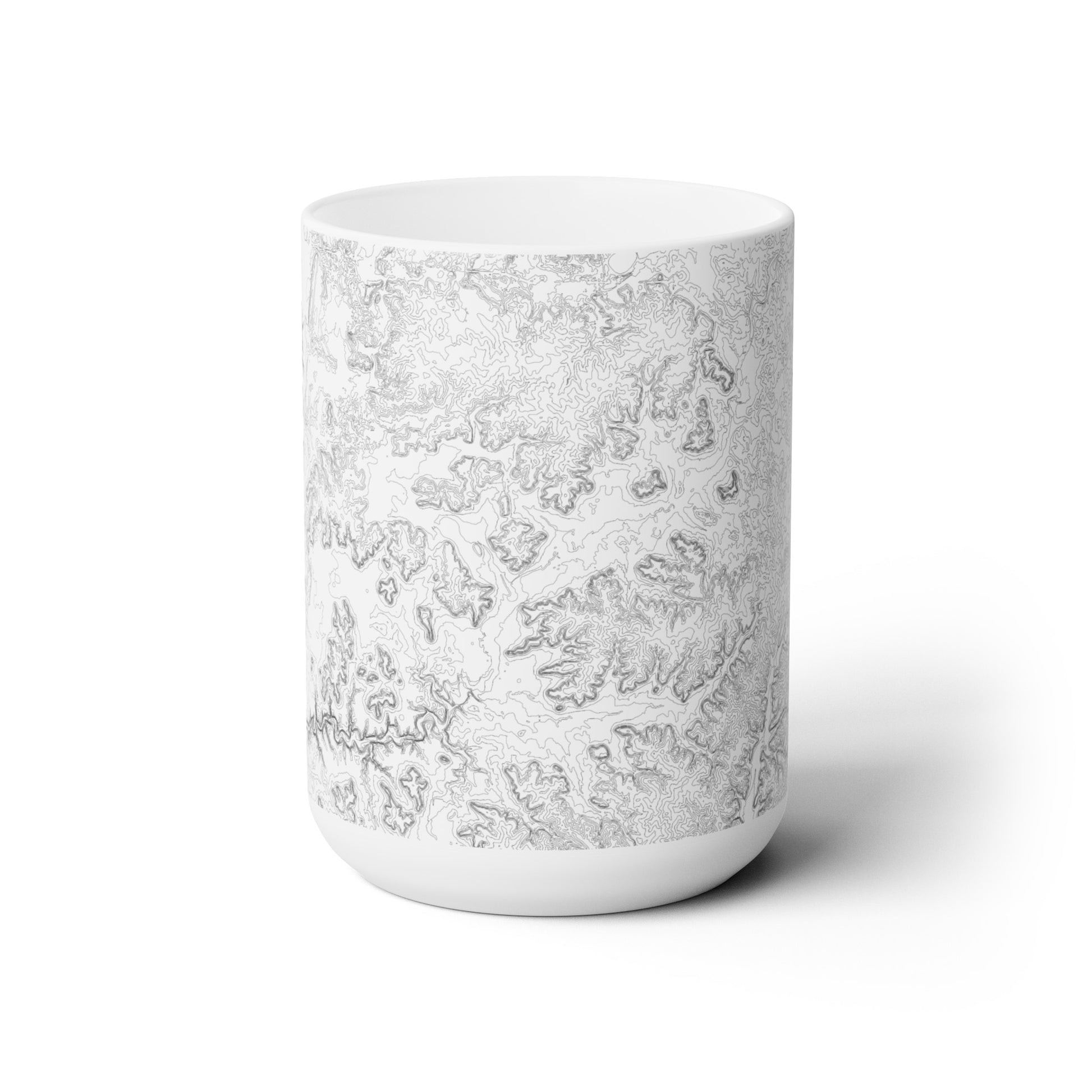 15 oz. ceramic mugs adorned with topographic maps of beloved outdoor destinations. Whether you're sipping your morning coffee or winding down with a hot cocoa by the campfire, let these mugs transport you to your favorite natural retreats. Microwave/dishwasher safe. Crafted with durable ceramic, each mug combines functionality with aesthetic appeal, making it the perfect companion for your adventures, both near and far.